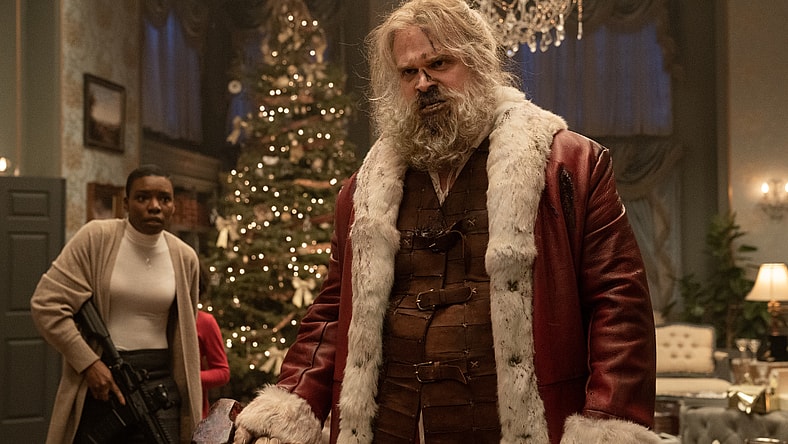 Santa’s on screen relationship with Trudy comes off as corny and melodramatic rather than touching and sweet as intended, but Harbour’s drunken presence is easily the most enjoyable aspect of Violent Night. His tattooed dad bod, shameless portrayal of being completely out of shape, and the fact that he gets the crap kicked out of him at every turn only makes you like the character more.