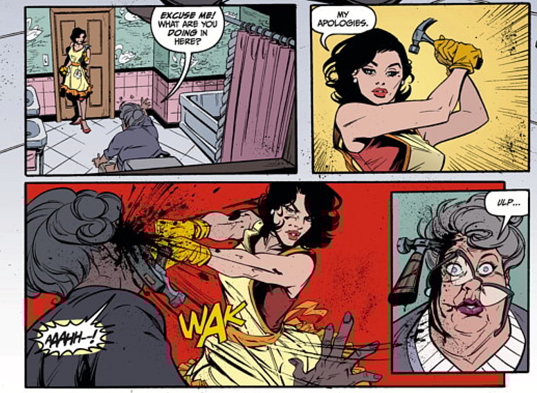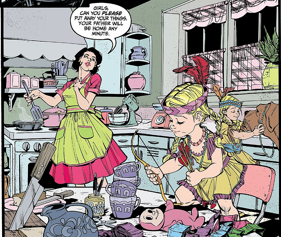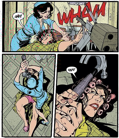 The official description for the first volume in the series reads, “Josie Schuller is a picture-perfect homemaker, wife, and mother–but she’s also a ruthless, efficient killer! She’s balanced cheerful domestic bliss with coldly performed assassinations, but when Josie finds herself in the crosshairs, her American Dream life is in danger!”