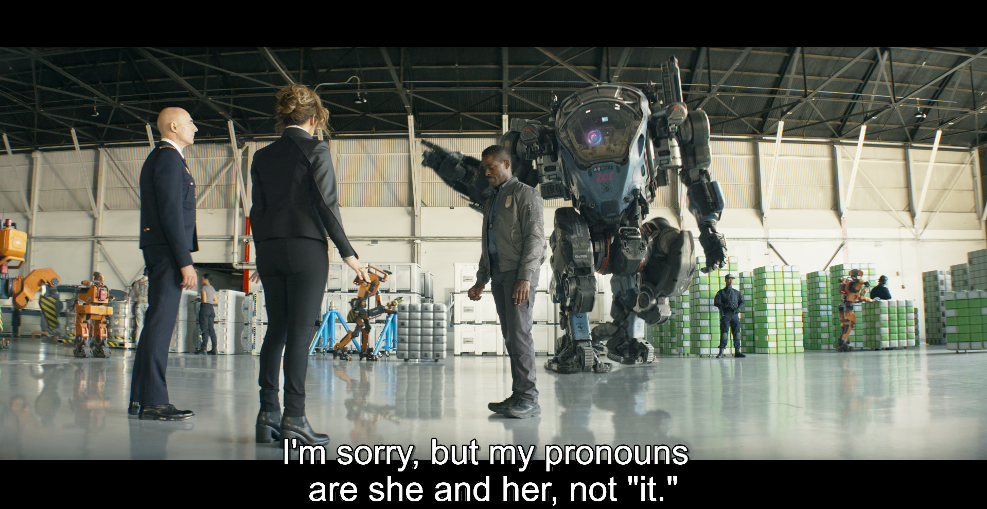 However, before the Colonel is able to respond, Zoe quickly takes offense to Atlas’ comment and corrects her, “I’m sorry, but my pronouns are she and her, not ‘it’.”