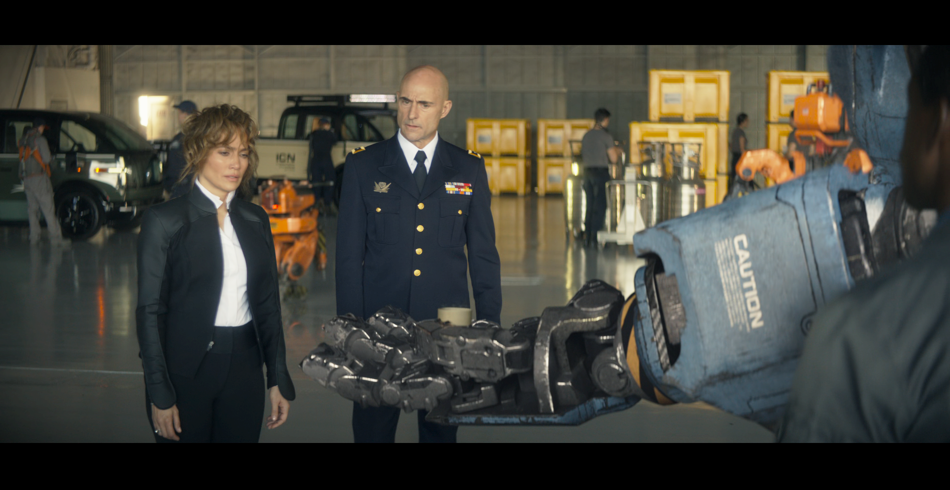 Aiming to put her worries at ease, Banks invites Atlas to accompany him and General Boothe to a nearby hanger, whereupon their arrival the group is greeted by a lumbering Arc Suit, as operated by an AI named Zoe (Zoe Boyle), holding the requested cup of coffee.