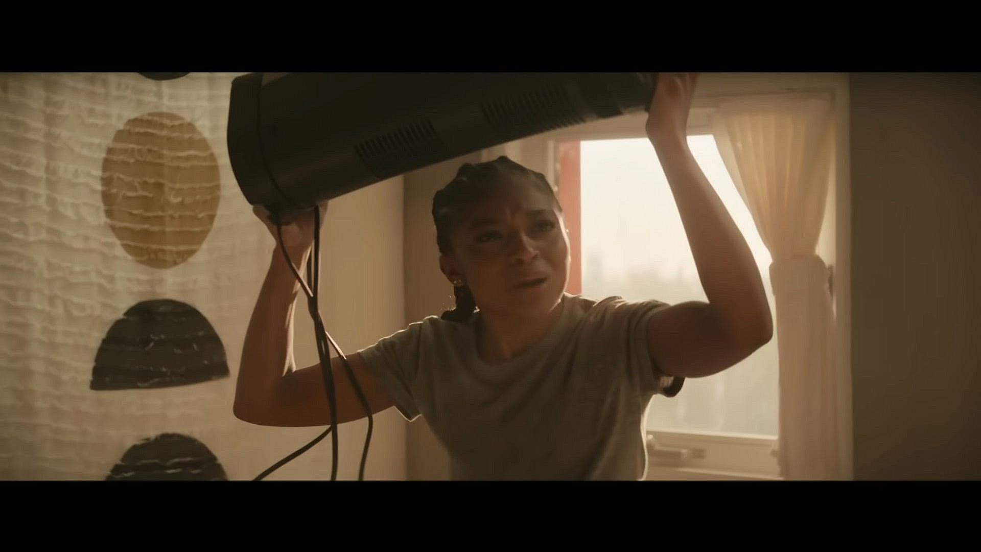 “I am warning you, do not take another step towards me!” she yells at her guests, picking up a portable speaker to wield as a makes-shift weapon.