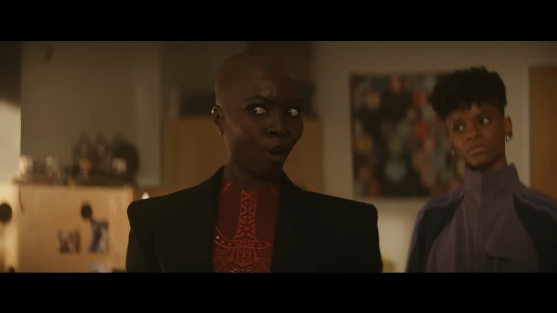 “Oh it’s funny?” snaps Okoyoe, only to be met by a meek reply of “No, it’s not…” from Shuri, who is actively attempting to hold back her laughter.
