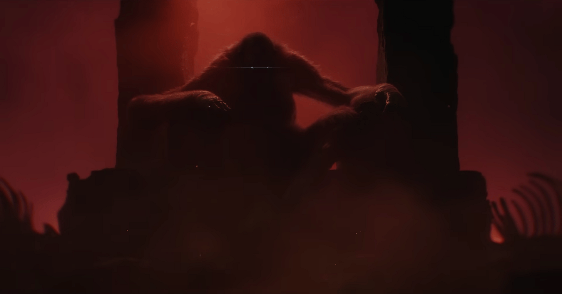 The view slides back, showing that the Titan is surrounded by a boneyard, implying his brutality and unbeaten status amongst potential rivals. The visual continues to track backward until it stops on the skulls of the latest victims — those of Godzilla and Kong — followed by their respective roars. There’s slightly more but watch the short teaser below first.