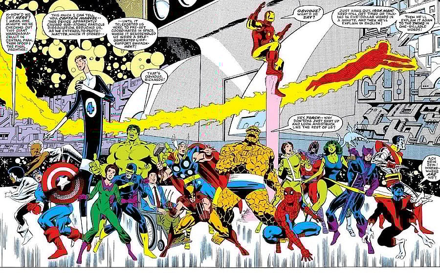 The original storyline from 1984 involves a large group of superheroes and supervillains being transported to “Battleword” by a cosmic entity called the Beyonder. Upon entering Battleworld, the heroes and villains form teams and engage in various skirmishes with one another.