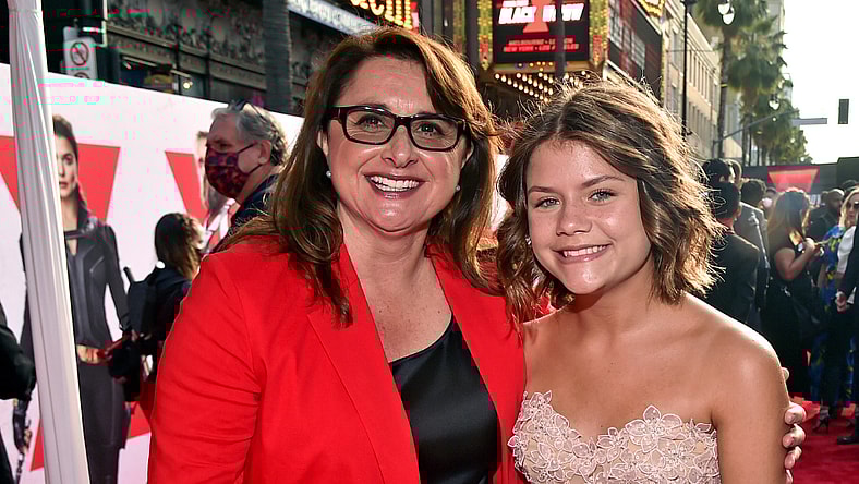 LOS ANGELES, CALIFORNIA - JUNE 29: (L-R) EVP of Production at Marvel Studios Victoria Alonso and Lia McHugh attend the Black Widow World Premiere Fan Event at Dolby Theatre on June 29, 2021 in Los Angeles, California. (Photo by Alberto E. Rodriguez/Getty Images for Disney)