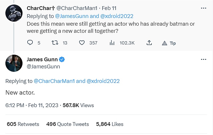 Gunn would also reply to another user who questioned, “Does this mean were still getting an actor who has already batman or were getting a new actor all together?”