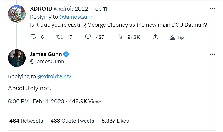 When asked if Gunn was casting Clooney as the new main DCU Batman, Gunn responded, “Absolutely not.”