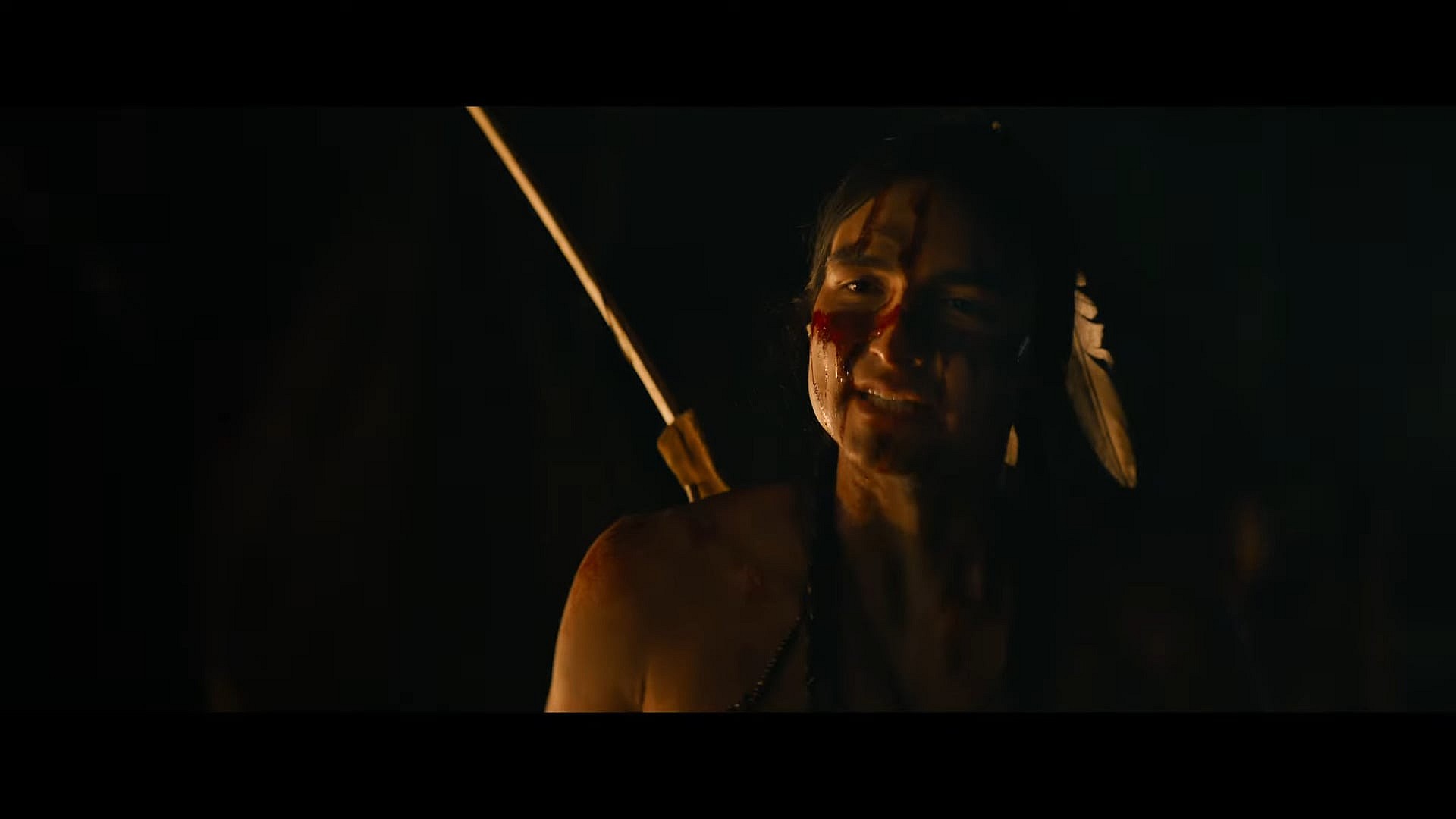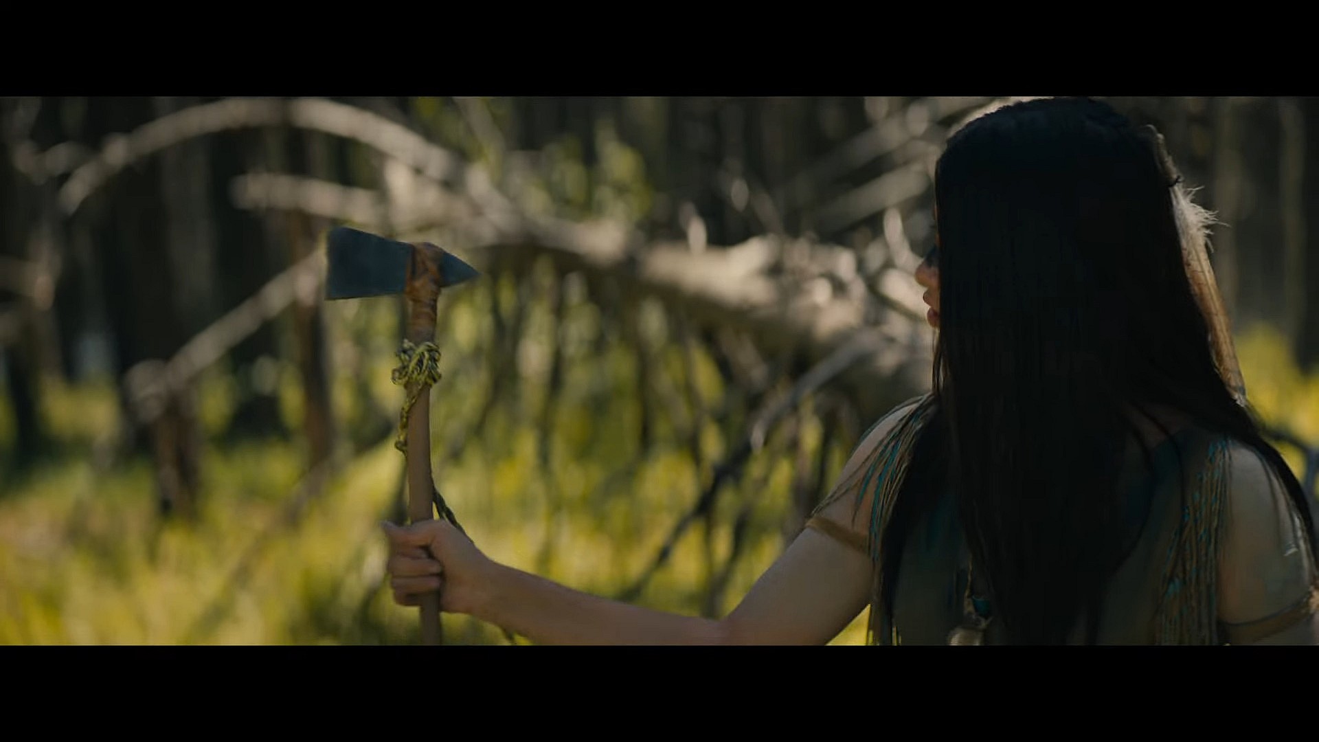 Audiences are then presented with the scene featured in the film’s previously released teaser trailer, which finds Naru running out of the forest into a field before being suddenly pulled down mid-escape by another tribe member.