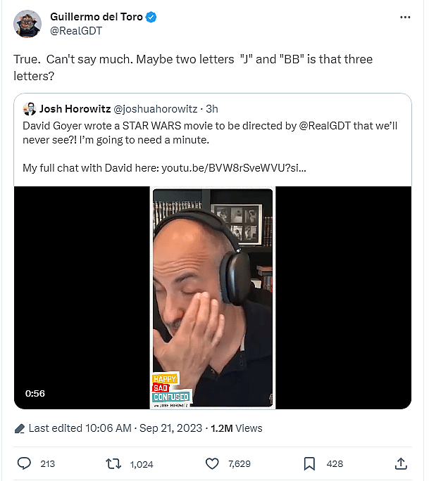 David Goyer wrote a STAR WARS movie to be directed by @RealGDT that we’ll never see?! I’m going to need a minute.