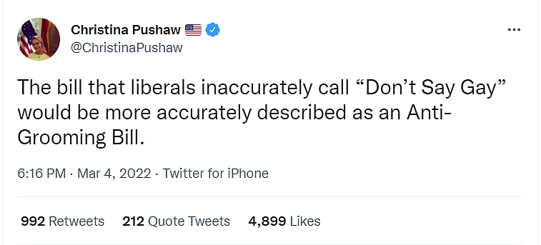 The bill has been dubbed the “Anti-Grooming” bill by Florida Governor Ron DeSantis’ Press Secretary Christina Pushaw.