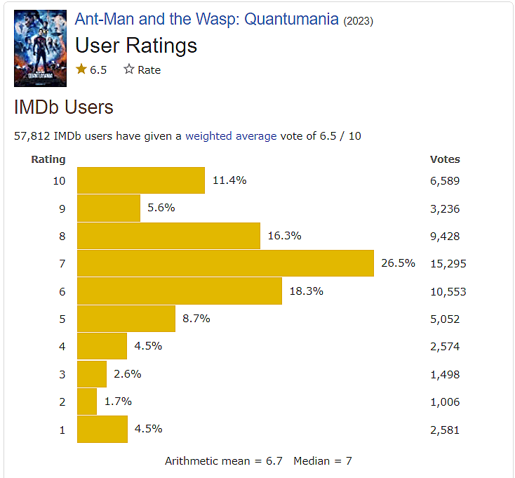 The film has also has the third worst user rating for all Marvel Cinematic Universe films on IMDb with a 6.5.