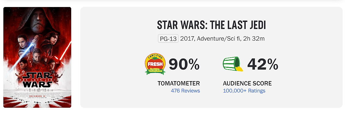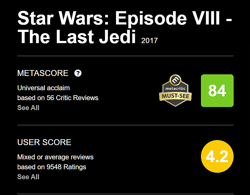 On Metacritic, the film has a 4.2 User Score from over 9500 user reviews.