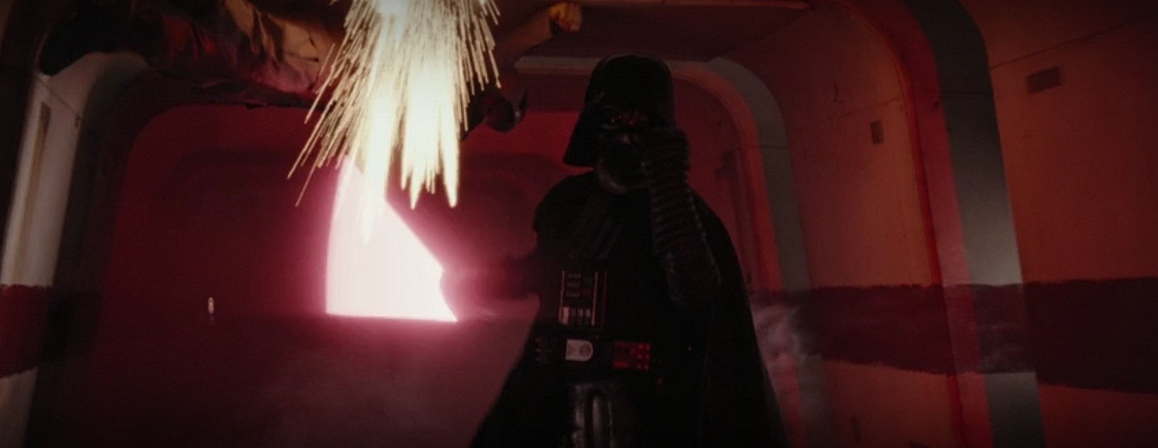 The scene was meant to act as a direct bridge towards Star Wars: Episode IV – A New Hope, adding further exposition as to how the Rebels actually managed to acquire the plans, and why Vader was so invested in reacquiring them. The scene was well-received by fans for showcasing just how lethal and powerful Vader was, even against multiple armed opponents.