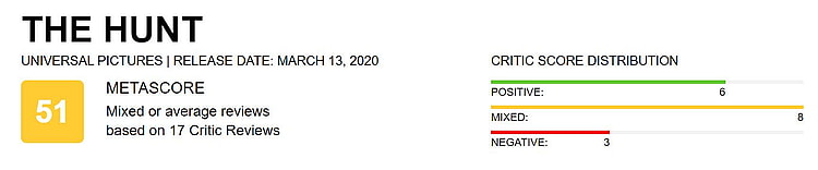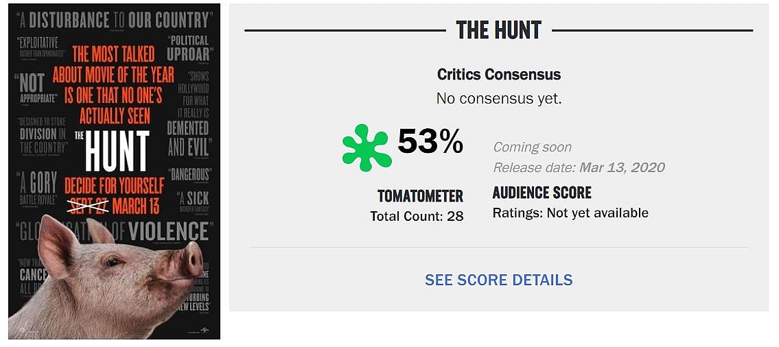 Rotten Tomatoes and Metacritic Critic Scores For The Hunt Announced