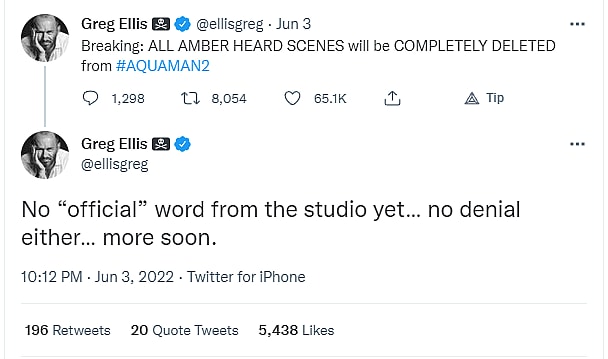 Voice actor and author Greg Ellis also picked up on Walsh’s scoop, adding there is no official word given by the studio that Heard is getting erased but there is “no denial either.”