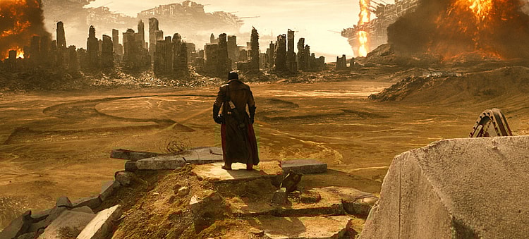 The Knightmare scene, for those who have forgotten, was a brief moment in Justice League wherein Batman, in the midst of a nightmare, saw a vision of the Earth laid to ruin by Darkseid’s armies, as well as a brief glimpse of himself being captured by the New God’s Parademons