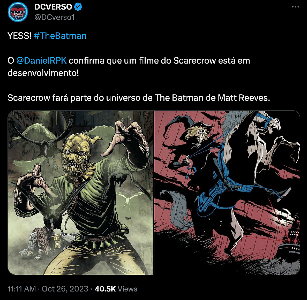 No casting was proposed and there are no further details about this story, but feel free to tell us what you want to see in a Reeves Bat-Verse Scarecrow.