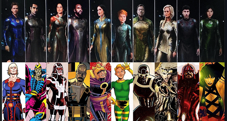 The Eternals’ roster is a mishmash of gender-swapped, race-swapped and sexuality swapped versions of their comic book counter parts.