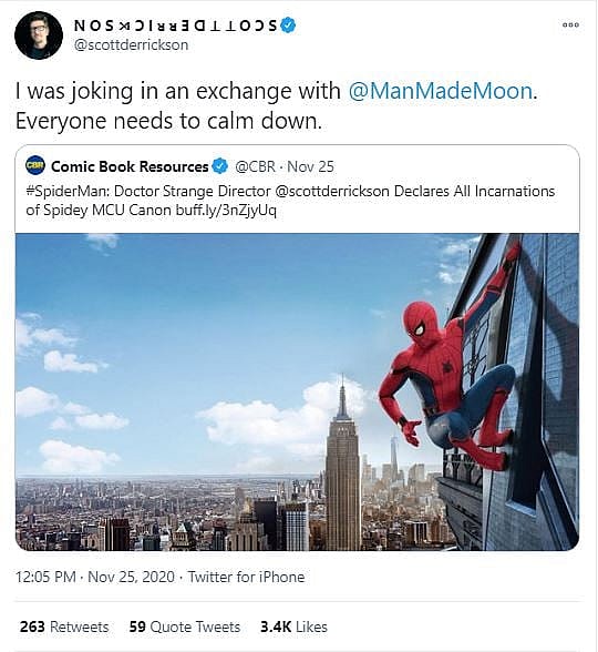 However, Derrickson would clarify shortly after making this tweet that he was simply “joking in an exchange with [interviewer Duncan Jones] @ManMade Moon,” and asserted that “everyone needs to calm down,” specifically noting how several entertainment websites ran news stories discussing his tweet.