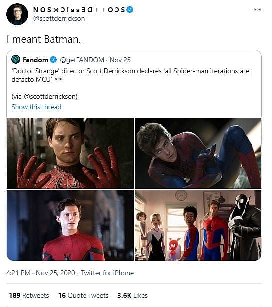 In response to a FandomWire article he wrote, “I meant Batman.”