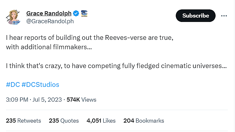 What do you make of this latest rumor that Warner Bros. Discovery is also expanding and building out Matt Reeves’ The Batman world while simultaneously attempting to kickstart the new DC Universe under James Gunn?