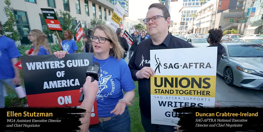 SAG-AFTRA has been in support of the ongoing Writers Guild of America strike. Crabtree-Ireland appeared on the picket line and said, “We were here at day one of the negotiations thanks to the invitation from Ellen and Meredith. And we’ve been standing beside the Writers Guild the whole way.”