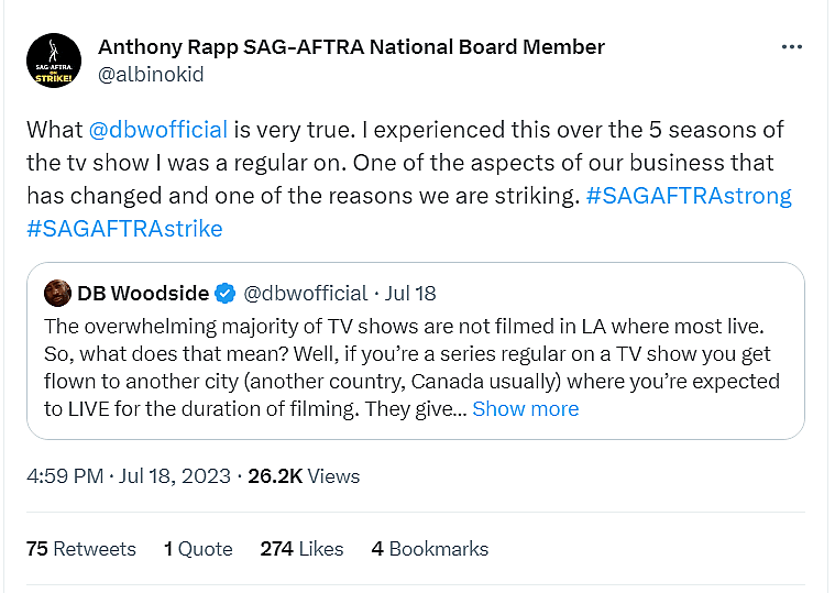 He tweeted, “What D.B. Woodside is very true. I experienced this over the 5 seasons of the tv show I was a regular on. One of the aspects of our business that has changed and one of the reasons we are striking.”