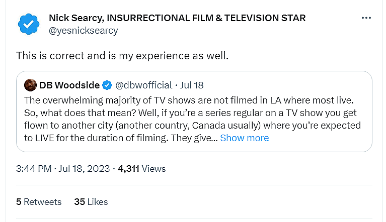 Justified actor Nick Searcy also shared, “This is correct and is my experience as well.”