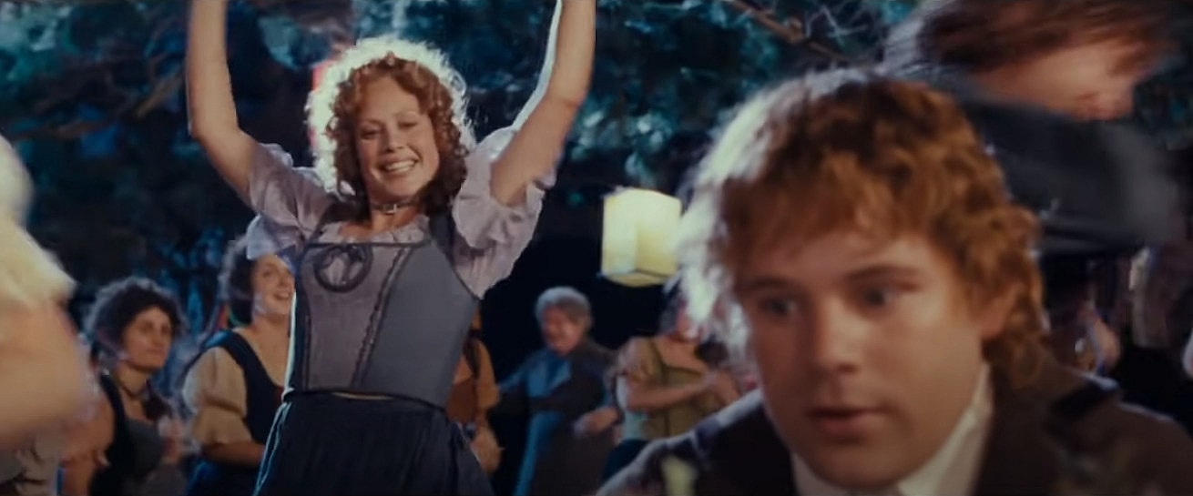 In The Fellowship of the Ring, at Bilbo’s birthday celebration, Sam is clearly eyeing Rose as she dances and partakes in the festivities.