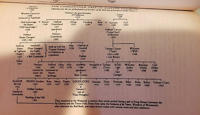 Not only does the timeline document that Sam and Rosie have two girls, but if you look at Sam’s family tree included in Appendix B it shows that the two have 13 children.