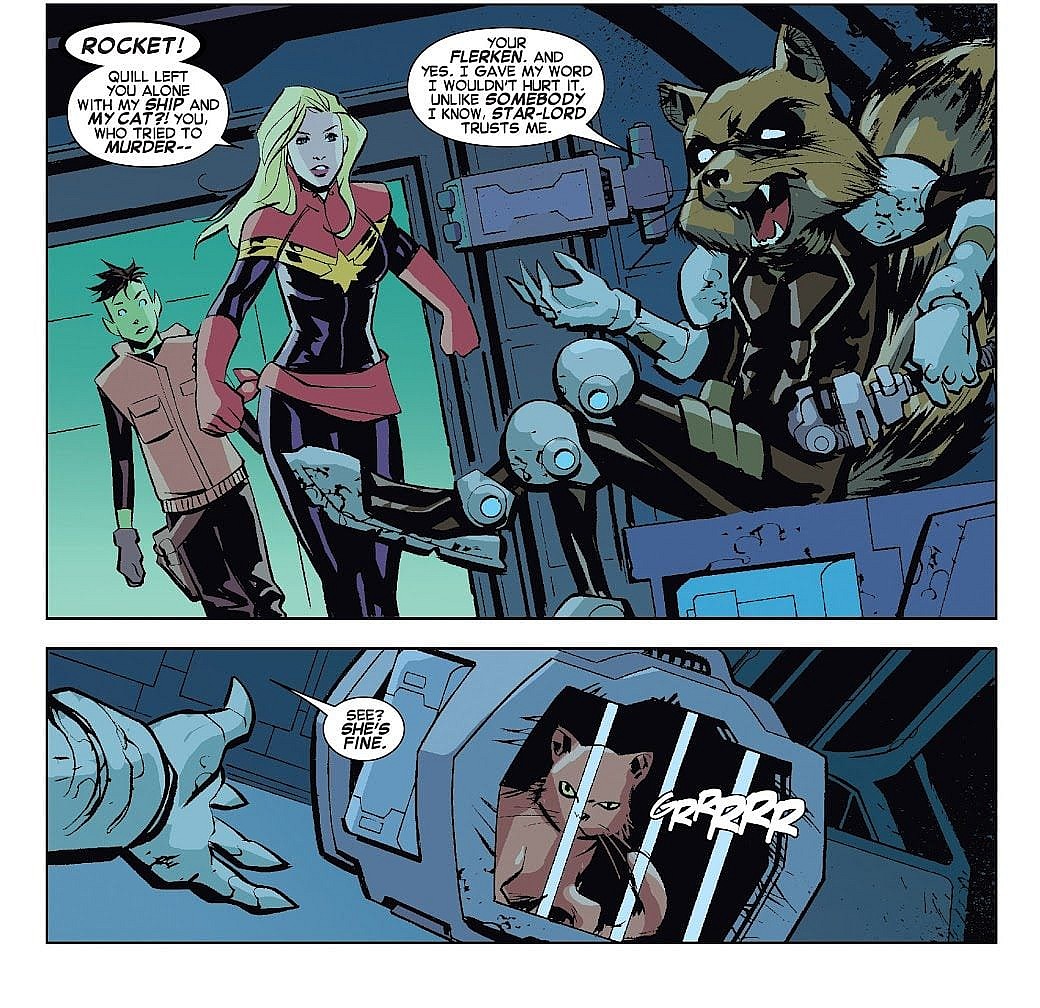 Not only would Chewie have a number of babies will traveling with Captain Marvel throughout space, but her power set is pretty awe-inspiring including creating gateways to pocket dimensions. Rocket even informs Captain Marvel he knows a guy who will pay Fifty thousand for the Flerken.