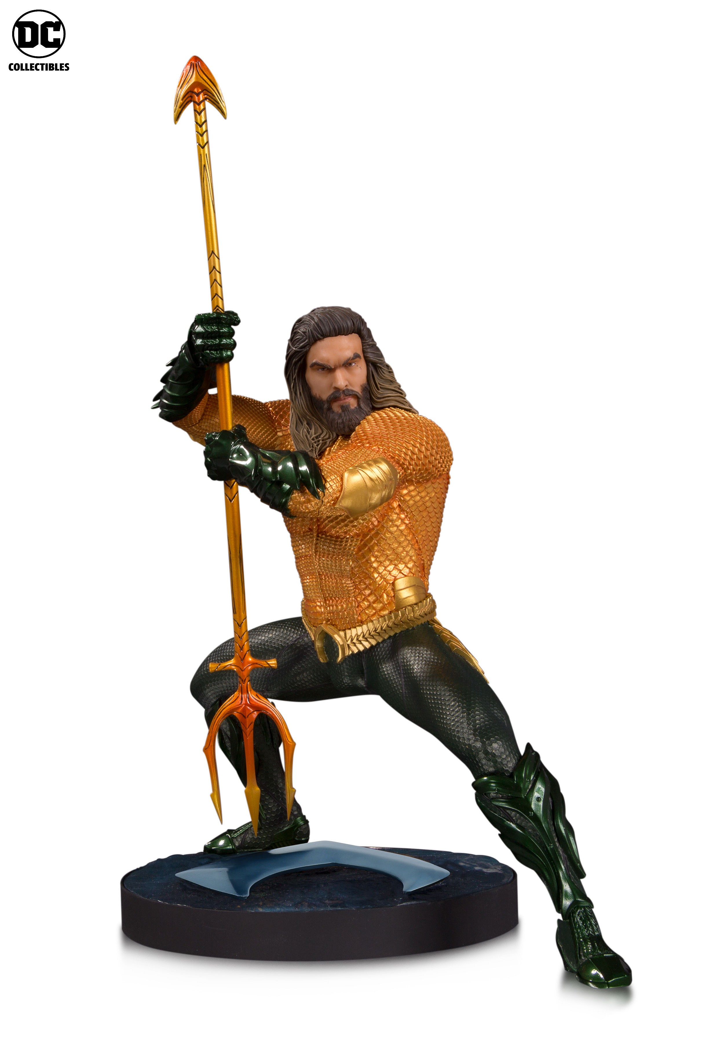 These collectibles give us our first real look at Jason Momoa’s Aquaman in what looks to be a very classic outfit. DC had previously released photos and posters showing Momoa’s Aquaman in a much bulkier outfit with shoulder pads. This one is much more streamlined and looks very much like the character’s iconic look.