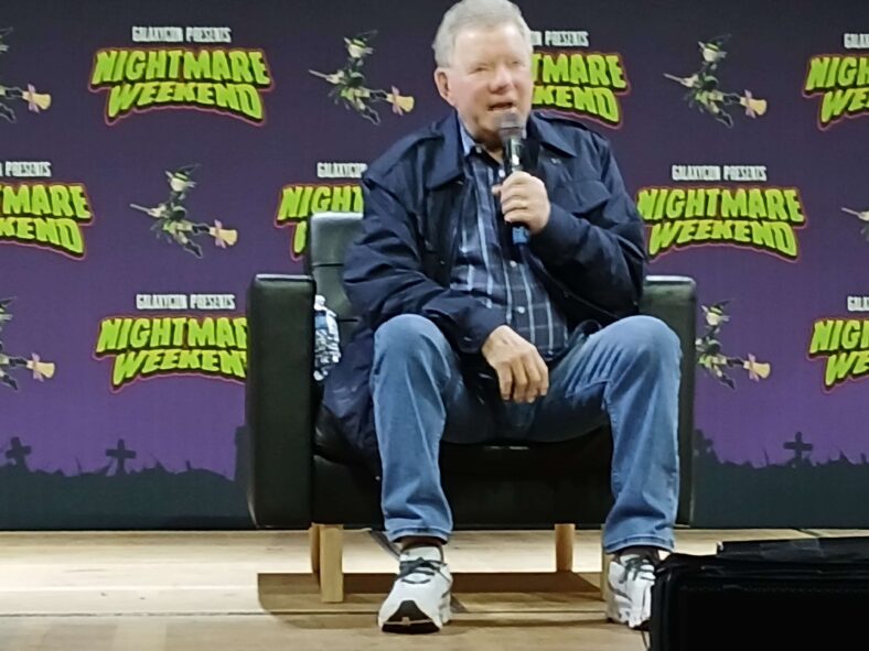 The crowd came alive when William Shatner strutted out onto the Main Stage on Day 2 of the Nightmare Weekend horror convention at the Donald J. Stephens Convention Center in Rosemont, Illinois. The 94-year-old actor, who most people immediately recognize as James T. Kirk from the Star Trek series, showed no signs of his approaching centennial as he stood for the first several minutes of the Q&A, and addressed everyone with a voice that was as robust and full of authority as a man several decades younger than him.