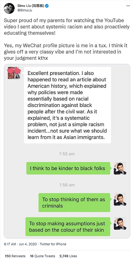 Shang-Chi Actor Simu Liu Claims “Media Narratives Are Polarizing Us,” He Advocated For Dismantling The Police And Pushed Systemic Racism Theory