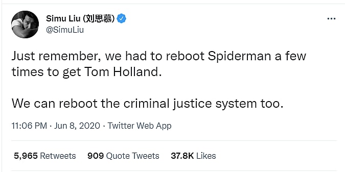 He wrote, “Just remember, we had to reboot Spiderman a few times to get Tom Holland. We can reboot the criminal justice system too.”