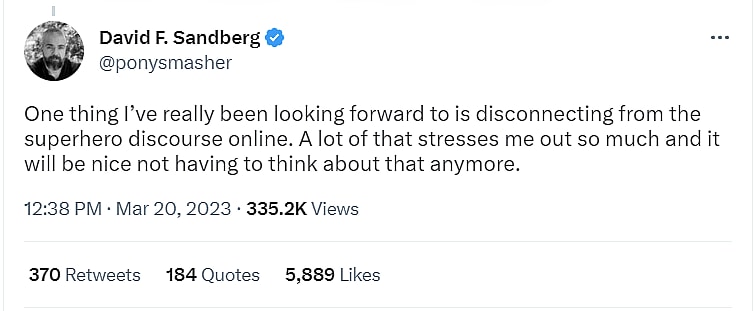 He concluded his thread writing, “One thing I’ve really been looking forward to is disconnecting from the superhero discourse online. A lot of that stresses me out so much and it will be nice not having to think about that anymore.”