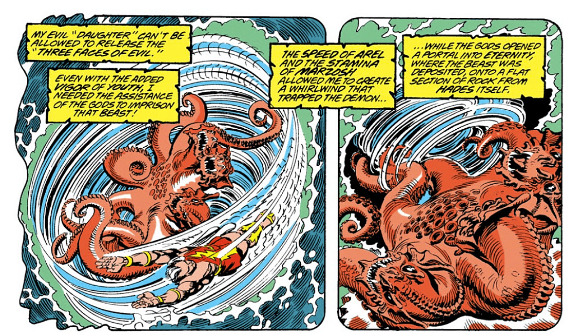 In the comics, the being was originally trapped by The Wizard within the Rock of Eternity.