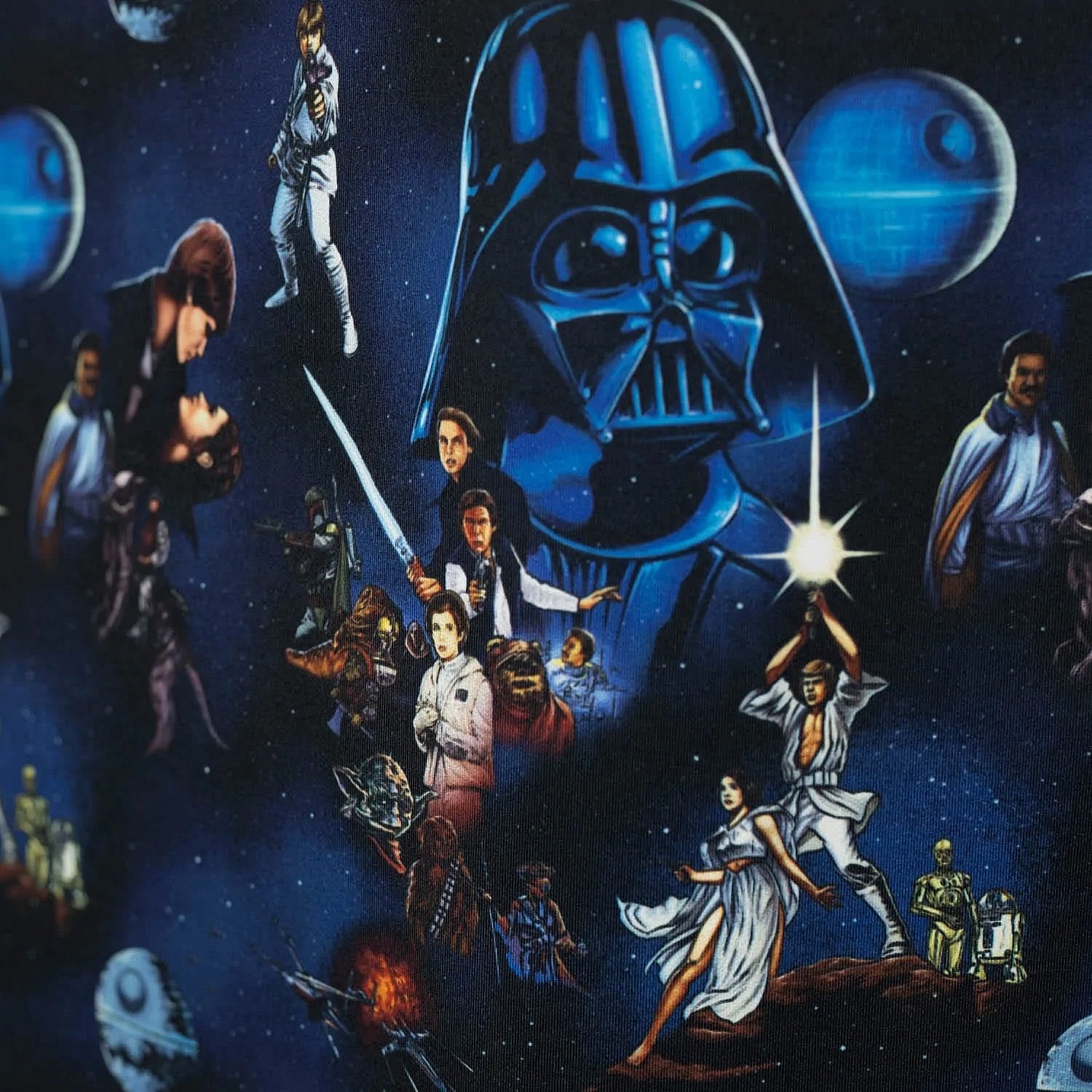 Interestingly, the same pattern features the ‘leggy’ image of Leia, as seen on the original theatrical poster for A New Hope, in its original and uncensored form.