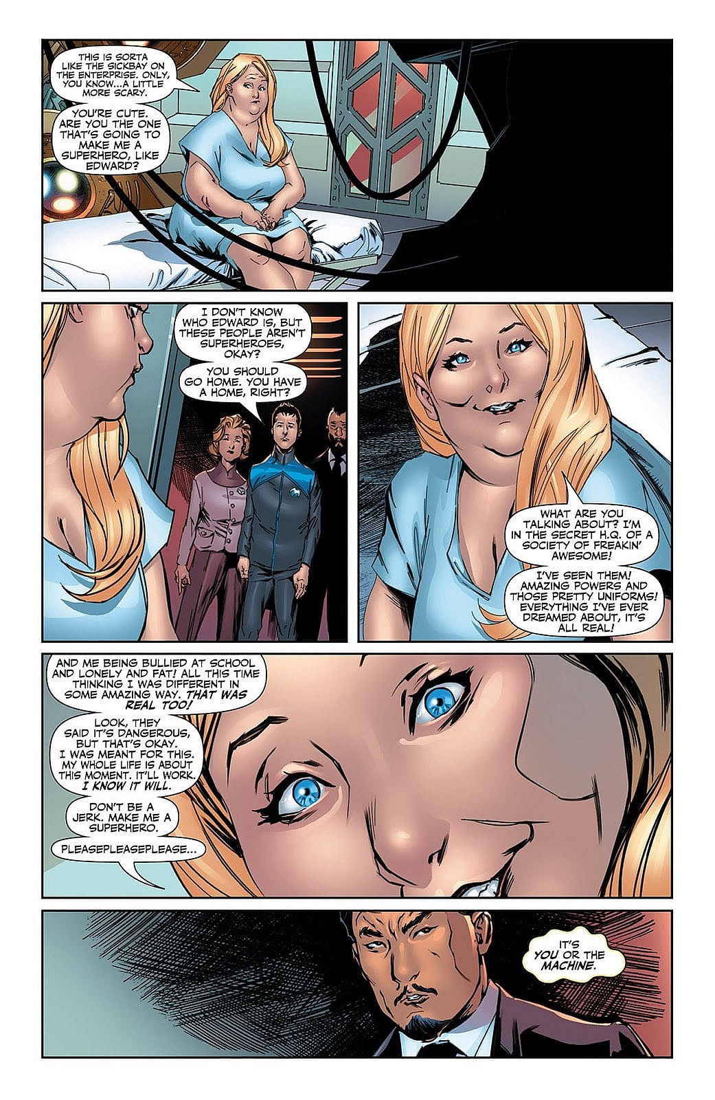 In the current Valiant comic continuity, Faith is introduced in Harbinger #4 as an excitable young woman who just wants to have superpowers.