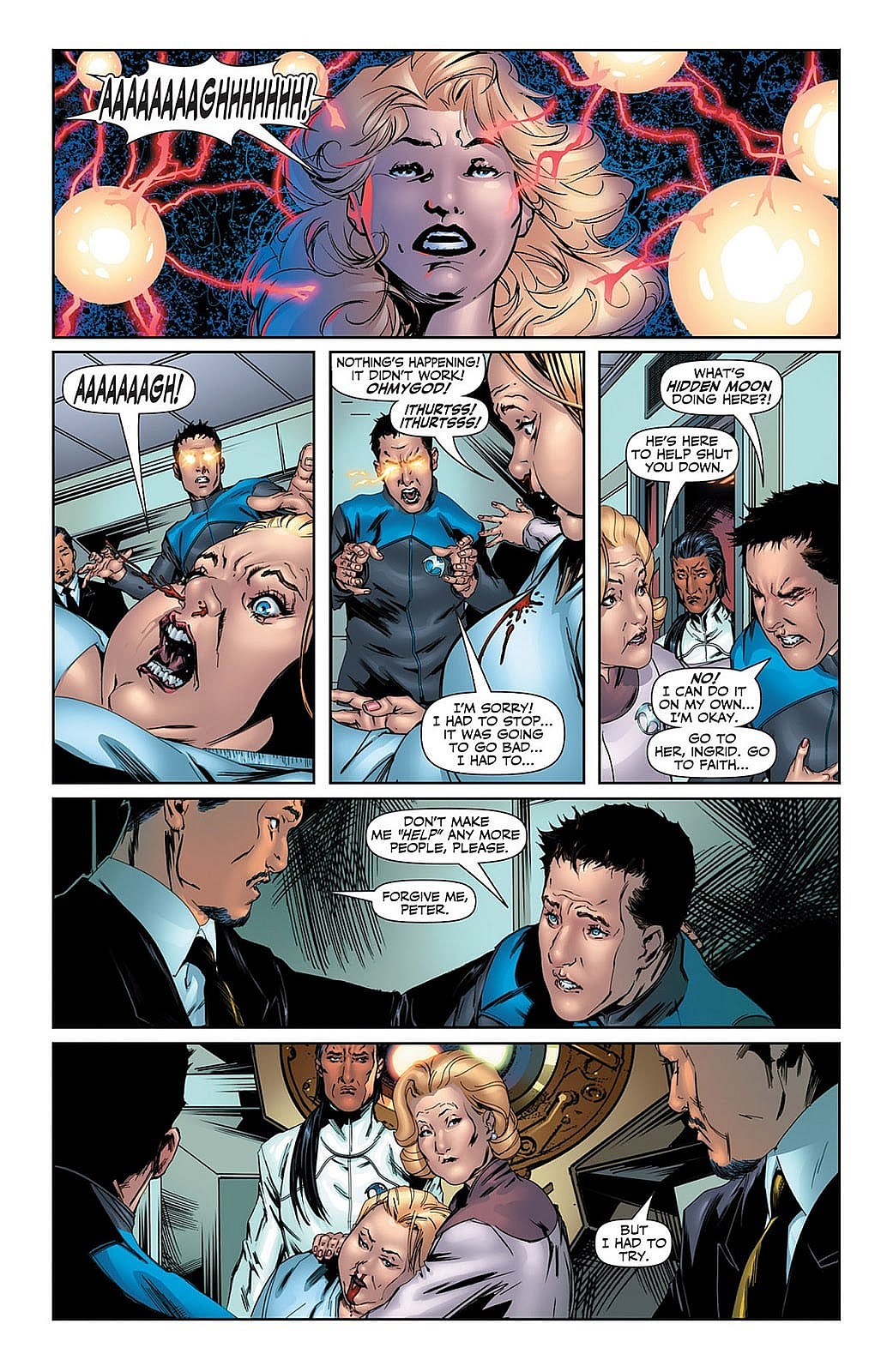 Stanchek attempts to awaken Faith’s abilities and it seems to be going well, until it doesn’t. Blood begins poring out of Faith’s nose and she ends up collapsing.