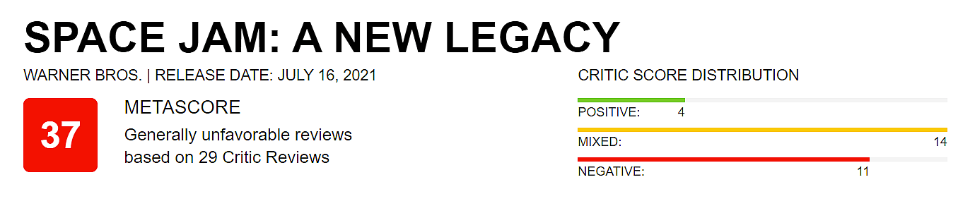 What do you make of these critic scores and reviews? Do they sway you one way or the other on whether or not you will see Space Jam: A New Legacy?