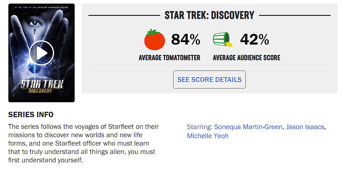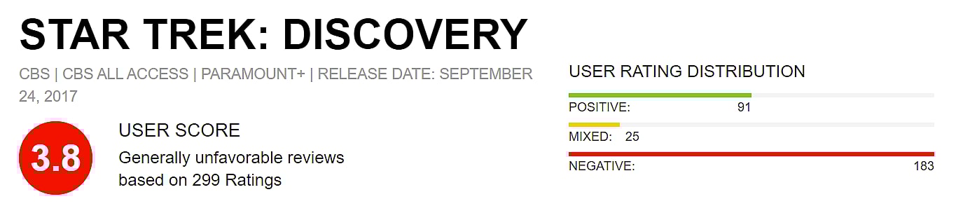 Meanwhile, Star Trek: Discovery, the main TV show that originally aired on CBS All Access has mixed reviews. The show has a 42% Average Audience Score on Rotten Tomatoes.