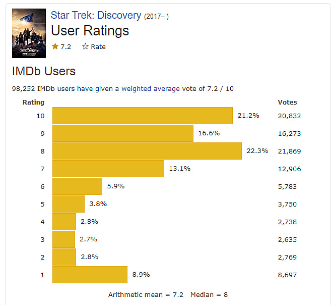 On IMDB, it has a much more favorable 7.2 weighted average User Score from 98,252 users.