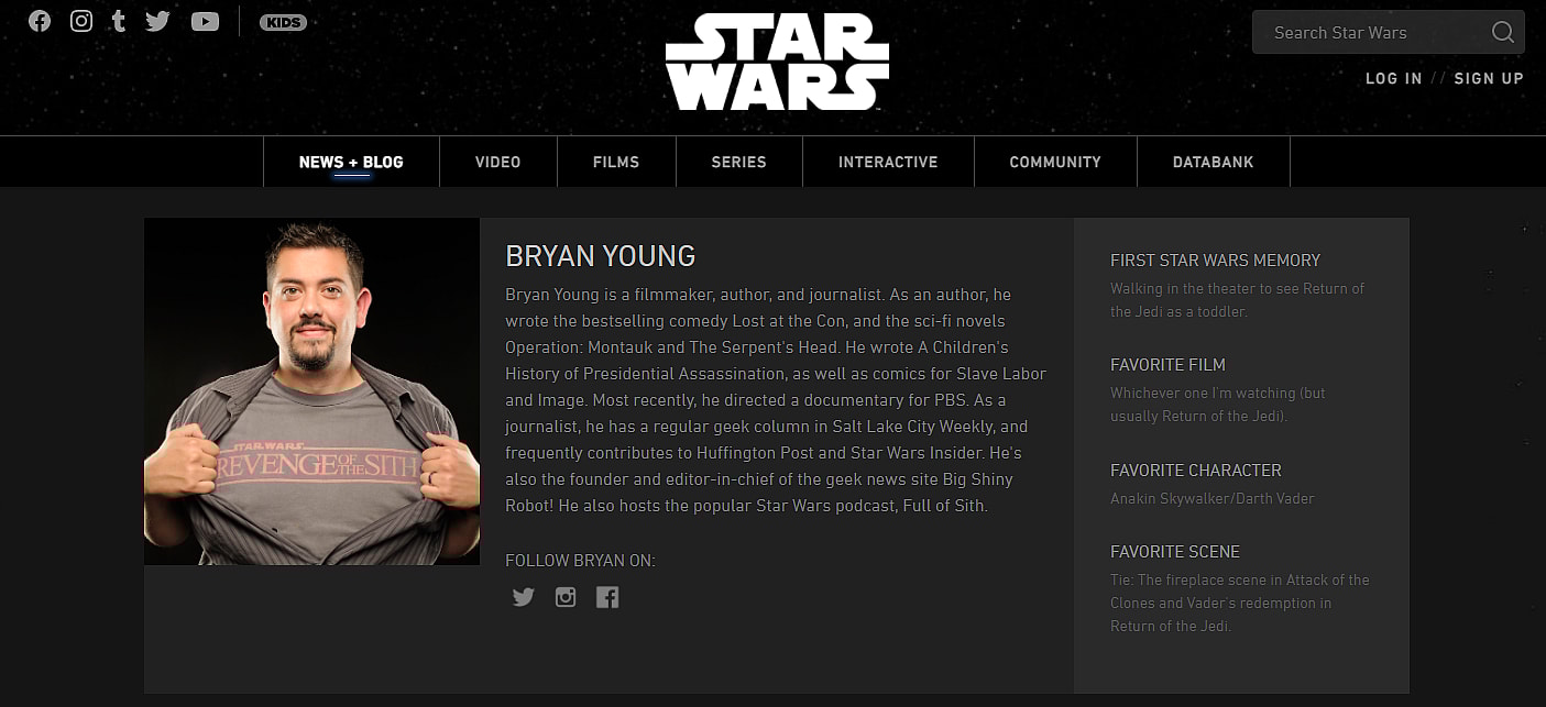 Young has also written for StarWars.com in the past, although he hasn’t written for the website since April 2019. More recently, he’s been writing for SyFy Wire.