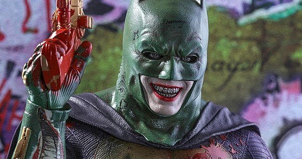 The Joker killed Robin and left a message for Batman on his suit. Mocking both Batman and the life he just took. Sounds like Joker alright. Suicide Squad’s marketing campaign made clever use of the character’s desire to make his mark on the world. Plenty of toys and posters took advantage of the Joker’s “tagging” style. Including some unique interpretations of the Batman costume, which led to speculation.