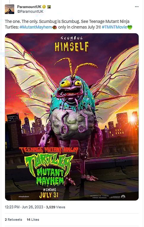 In an update in the comments section of his video, Price of Reason stated, “People have been telling me that they just saw TMNT Mutant Mayhem and somebody refers to Scumbug as “She” and I wanted to address this. When I saw an early screening 5 days ago, to the best of my recollection, Scumbug’s gender wasn’t mentioned one way or another. Knowing this character was historically male, after I had left the theater, I looked at Paramount’s official marketing for the movie. Their official movie character poster describes Scumbug as male and this is STILL POSTED on their official social media.”