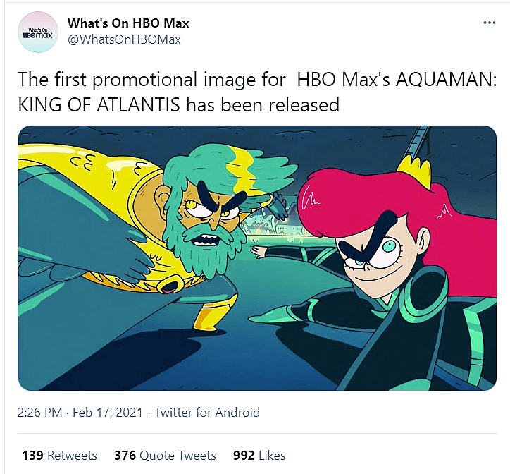 HBO Max revealed an alleged first look at Aquaman: King of Atlantis that shows off an Aquaman with green hair and Mera with a unibrow.