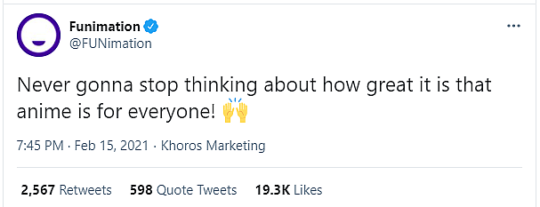 Funimation took to Twitter where they wrote, “Never gonna stop thinking about how great it is that anime is for everyone!”