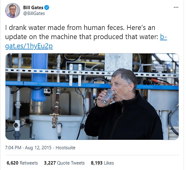 Now, you might be thinking why is this stupid. Well, see Bill Gates is here telling you what you should eat, when back in 2015, the guy drank water made from feces.