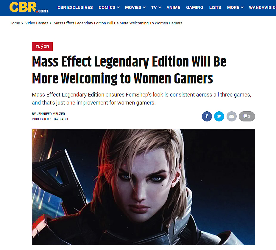This one comes Courtesy of CBR. The publication ran a headline that reads “Mass Effect Legendary Edition Will Be More Welcoming to Women Gamers.”